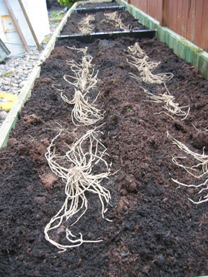 These asparagus crowns were purchased from the local gardening supply shop ...