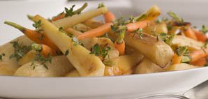 ... a platter of roasted root vegetables or parsnip with a roast turkey ...